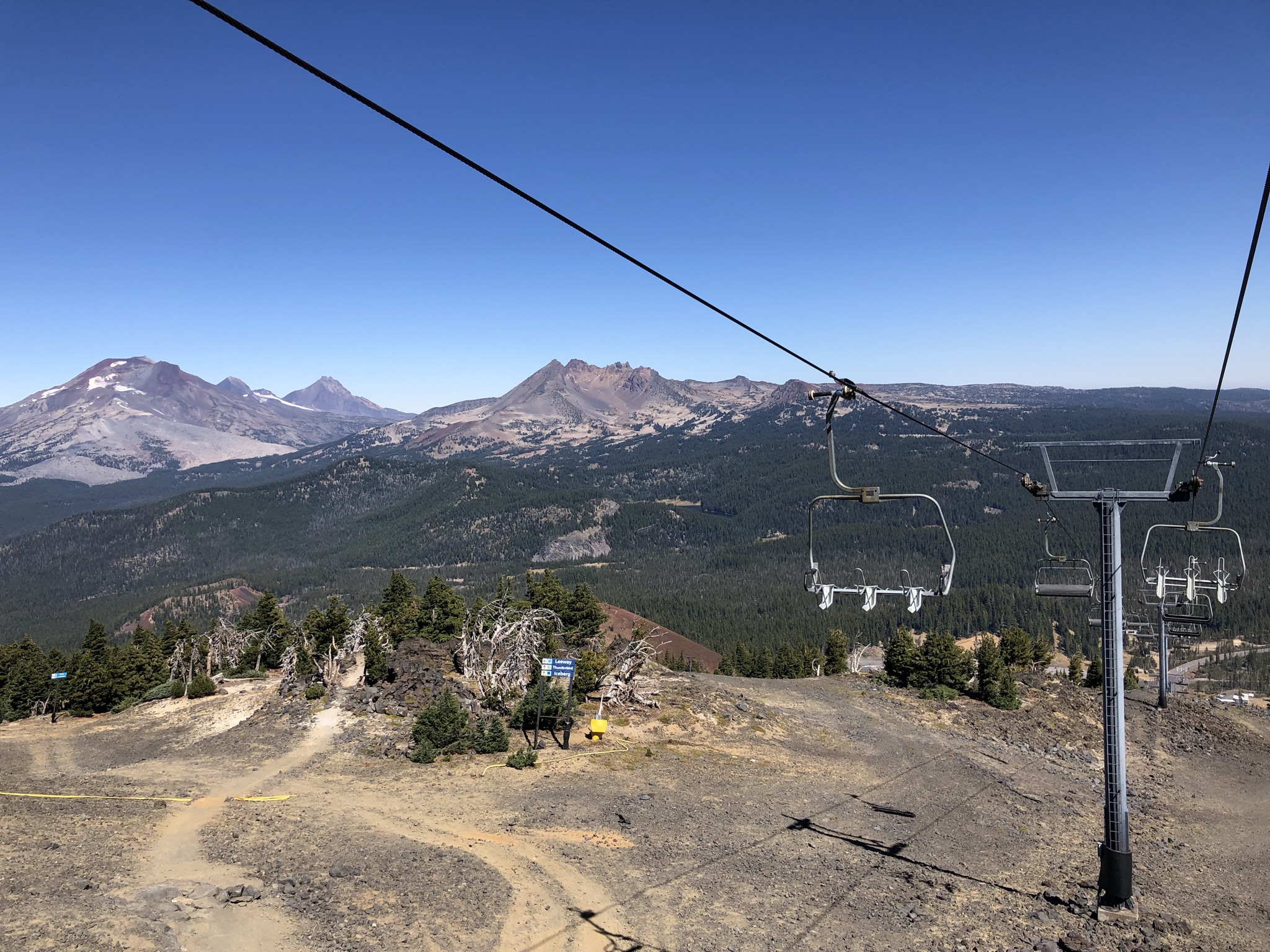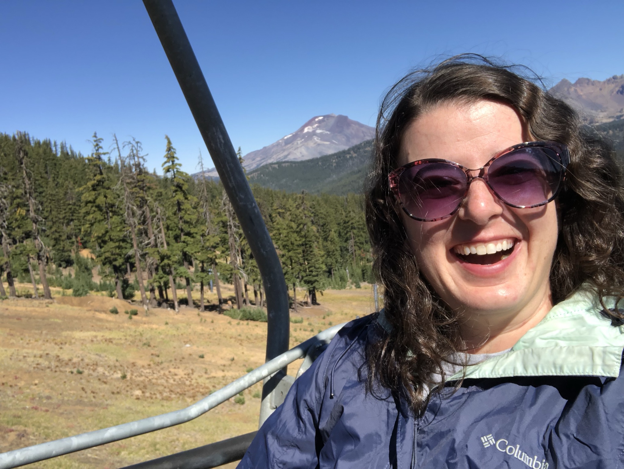 The next morning was clear. I guess I could have spent another day in Bend, I thought to myself, but I was fine moving on. I spent a slow morning getting on the road and picking up groceries and gas, then commenced the slow road trip to Crater Lake via the Cascades Lakes Scenic Byway, a gorgeous and nearly empty road at times that was lined with pine trees and mountain views of Mt. Bachelor and the Three Sisters. Taking a recommendation from a coworker, about an hour into my trip I made a stop at the Mt. Bachelor ski resort. Putting on my winter hat and layers I went to explore the not-crowded resort and figure out what to do. I opted to take the ski lift up and down for $24, deciding to skip the zipline experience. I had such fun going up the snowy mountain and seeing some amazing clear views in all directions. At the top I saw a few mountain bikers and zip liners and checked out the weirdly-located lodge and restaurant. I took a little hiking trail for a bit and enjoyed the awesome views and imposing landscape around me, filled with more lava rocks and patches of snow. I felt very happy out on the cold clear mountain!
