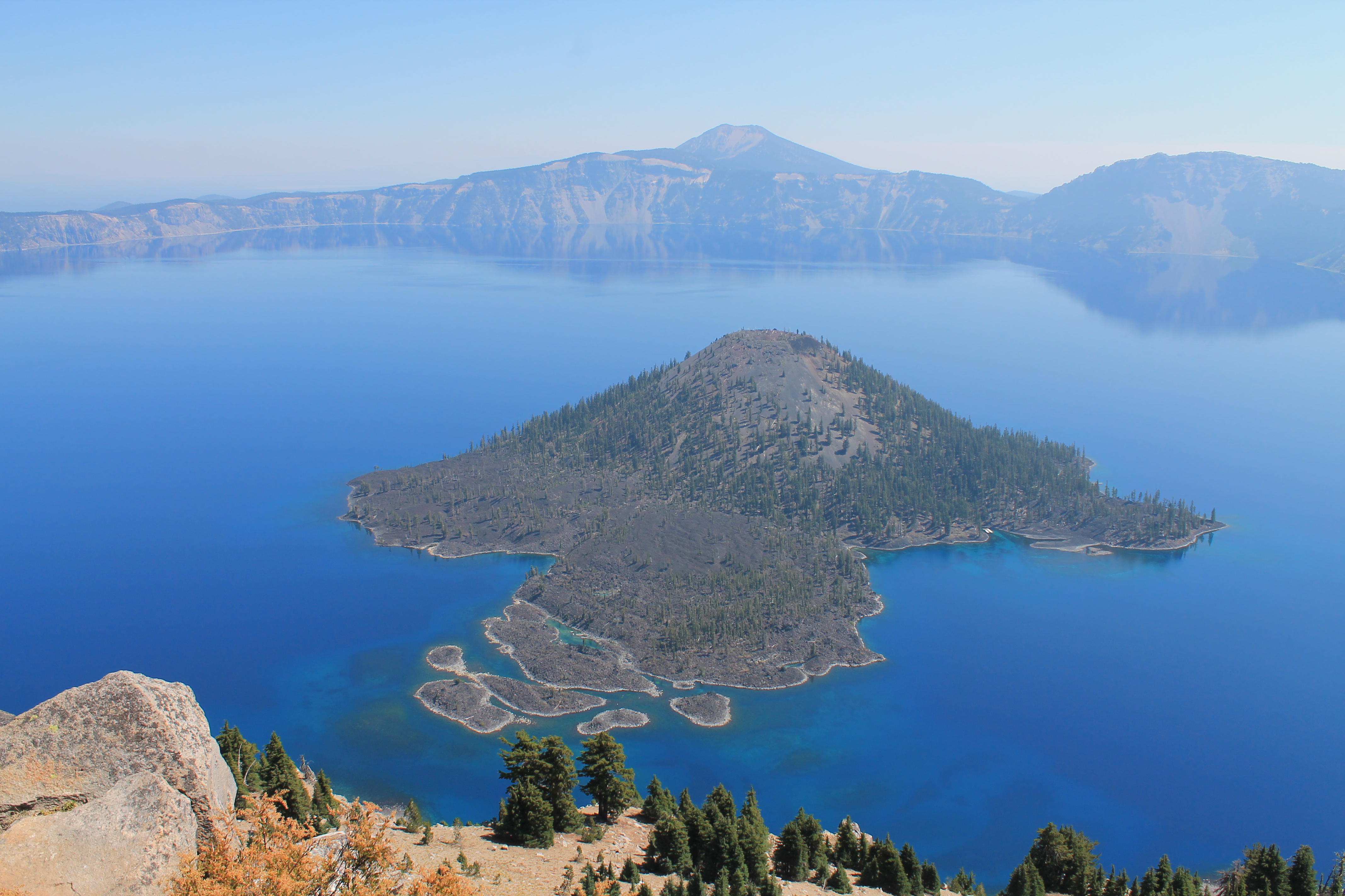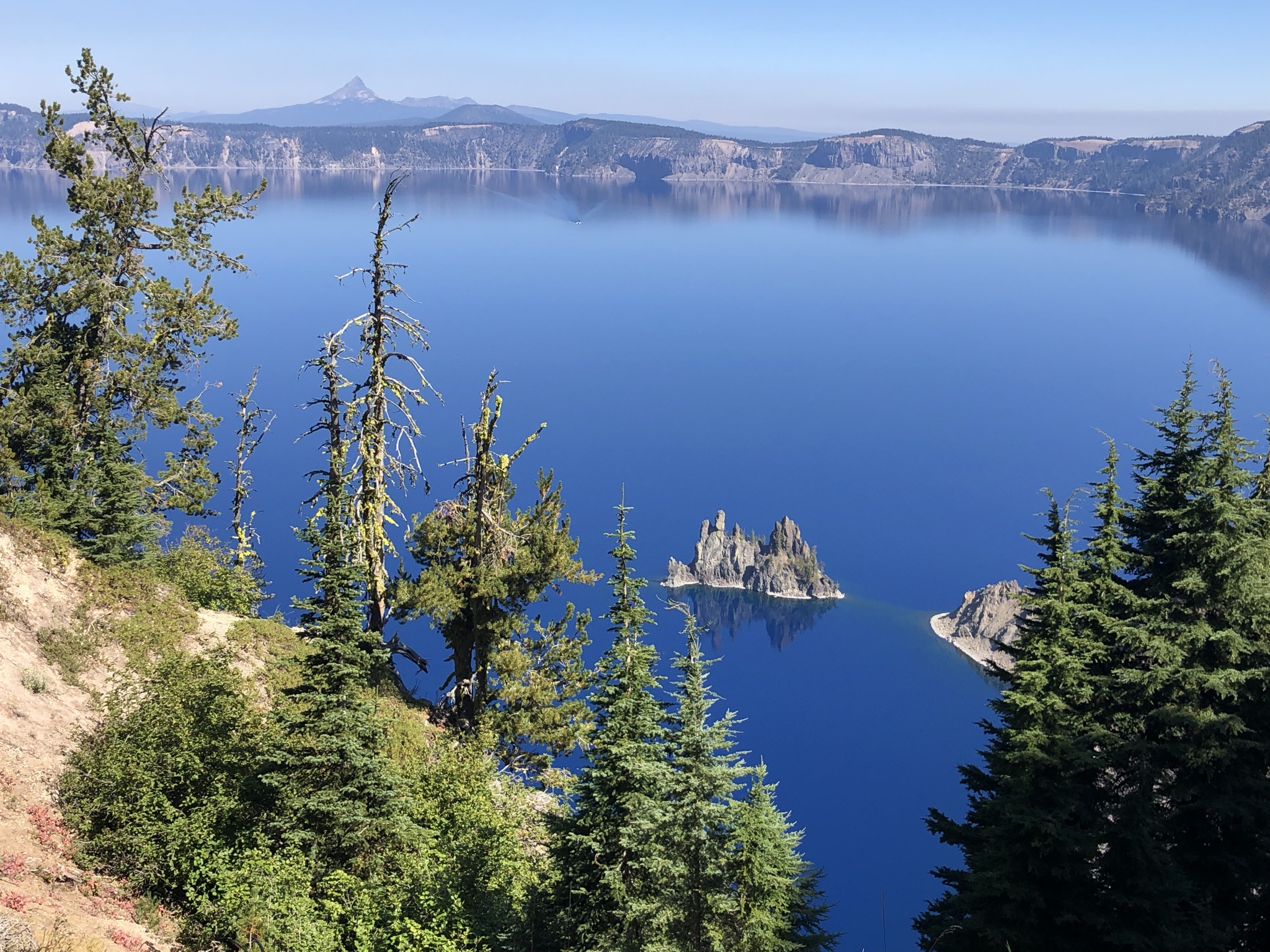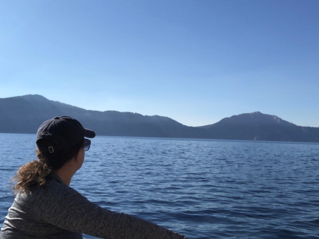 I made my way to a crowded area with several buildings, a gift shop and café, etc, and spent some time sitting around staring at the lake and chatting with a ranger about fires and his recent trip to Alaska. I was really happy with my day and felt great. It occurred to me that I had done everything I really wanted to do at Crater Lake, and I was pretty eager to go somewhere without smoke risk all the time. So there, in the mid-afternoon, I made the decision to leave the next morning.