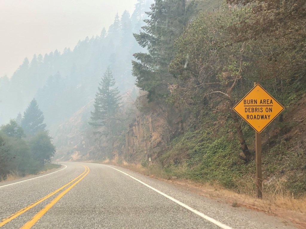 The next day commenced the unscheduled and unexpected part of the trip. While I knew I was traveling to a wildfire area and that I might need to rearrange some plans at the last minute, I really was not prepared for what it would actually be like, and for how dramatically I ended up changing my plans at the last minute. I learned a lot about air quality/AQI in preparing for this trip, knowing the scale goes from 0 to 500 and includes levels of good, moderate, unhealthy for sensitive groups, unhealthy, very unhealthy, and hazardous; with corresponding levels of health warnings and recommendations. Further, wildfire tracking is very strong, and it’s pretty easy to see how close they are to where you want to go, which way the smoke is blowing, and if any roads or public lands are closed.