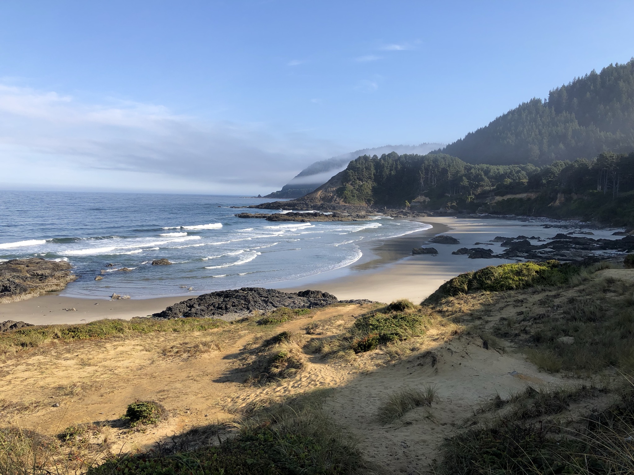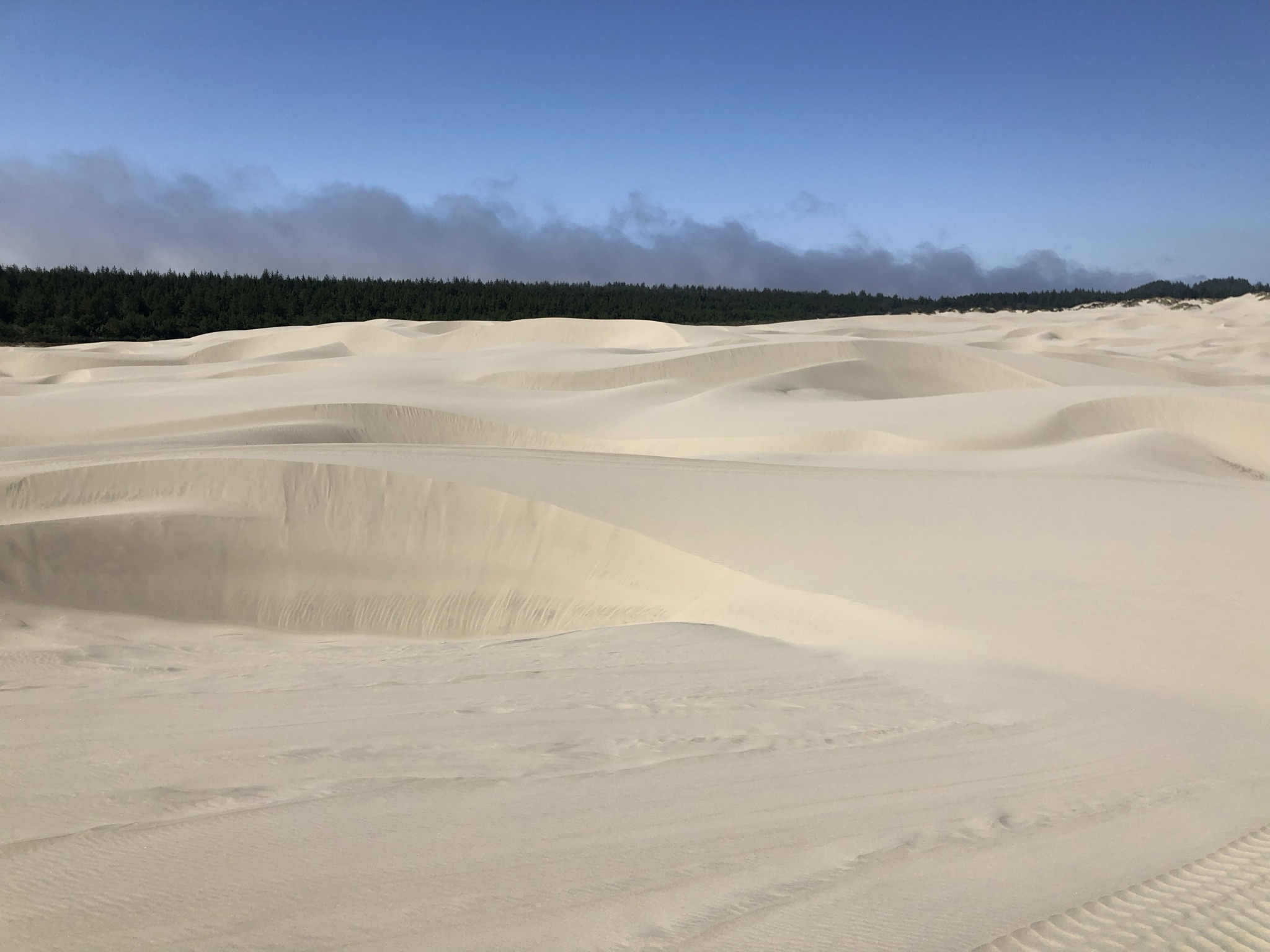 First up, the Oregon Dunes National Recreation Area. Did you know that Oregon features one of the world’s largest expansions of temperate coastal sand dunes? Until I stopped and saw them, neither did I. My first breath of fresh, cool salty sea air after days of smoky stress felt magical. I explored the dunes a little and watched some kids taking some death-defying leaps down a sand hill. I opted not to hike downhill to the water through the sand. The ocean view below looked eerily similar to having a line of smoke in the air, but as I learned later it was just fog, a very common coastal occurrence here.