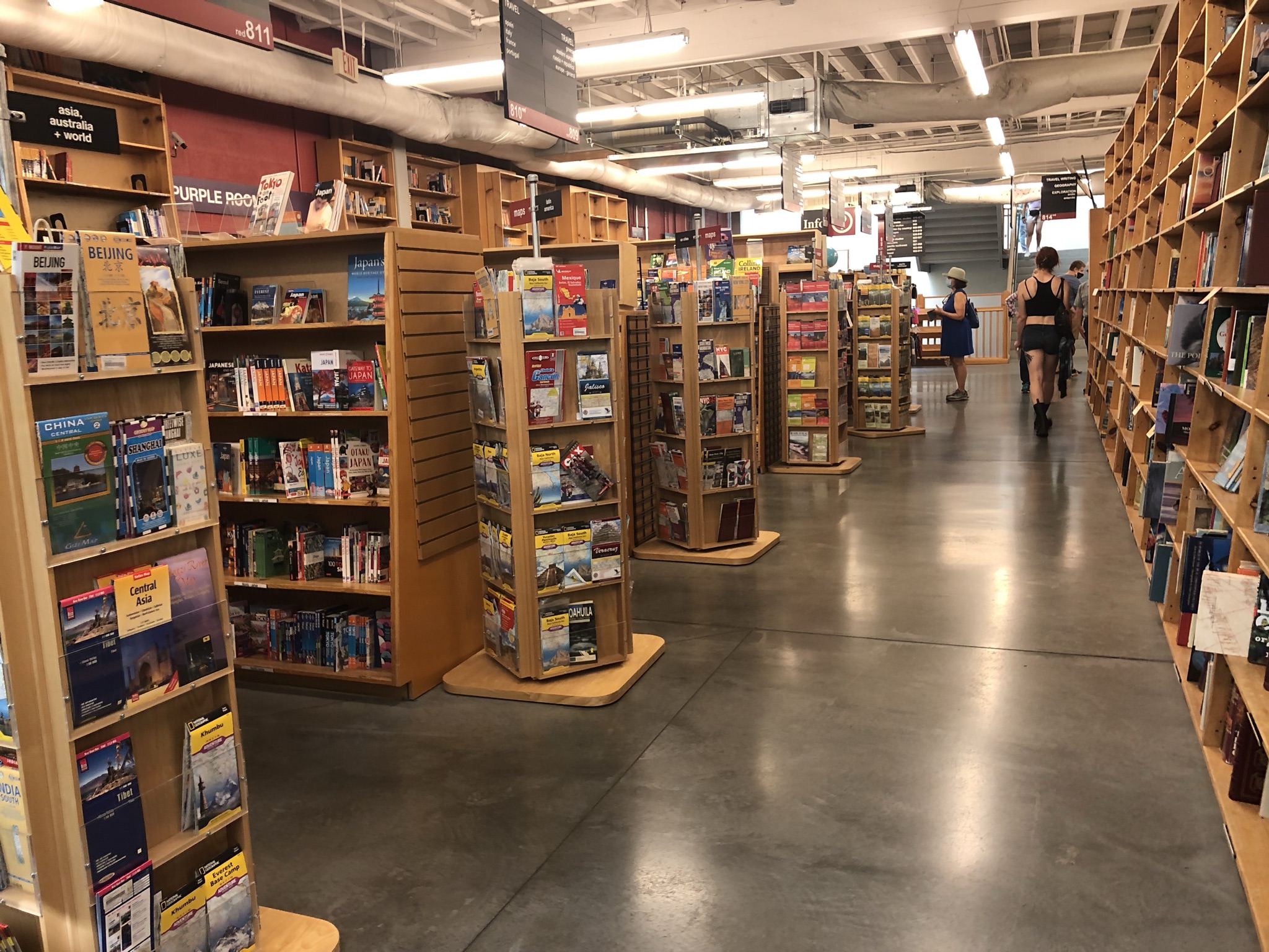 In the late morning I drove on just about an hour to Portland, and was excited to finally have an unstructured city day to enjoy after all the overstimulation. Perhaps that sentence might sound strange – I found myself sensing calm and order in the city compared to feeling wild and overwhelmed in nature. At least on this trip, and since I had been to Portland once before. So I parked by the hostel (the same one I stayed in at the beginning of the stay) and walked about 25 minutes over a bridge to the main downtown area. I took some time catching up by phone with my friend Thomas, a long-time friend and past travel buddy who had been on a similar Oregon trip a few weeks earlier. The outdoor Saturday Market near the waterfront was really cool and crowded, but I couldn’t really fit anything in my suitcase so I opted not to buy anything. I swear I didn’t overpack – the hiking shoes took up a lot of space! I bought an empanada for a snack and people watched for a bit. Next I walked past the famous VooDoo Doughnuts, where there was a prohibitively long line. Onward a few blocks to Powell’s Books, the largest independent bookstore in the world. I quickly found the travel section, which was its own huge room. I was thrilled and sat there reading and browsing for a while, eventually buying two books despite not having any space for them. I walked around a bit more, looking for food trucks and finding a really yummy falafel gyro. One of the most noticeable things about this city was the huge number of homeless people and a persistent smell that went along with it. Portland allows people to set up tents all over the city, and it seemed like folks were just flooding there. As I was walking I thought I sensed a little smoke in the air, but I couldn’t really smell it. I headed back to the car via bike share, which I got to use nearly for free with my NYC bike share membership. It was my first time trying an ebike, and taking it over the bridge was really fun and fast! Right near the car I noticed another branch of VooDoo Doughnuts right there, with no line. So I got a Grape Ape flavor and ate it in the car, since my next task was bringing in my suitcase and checking into the hostel. It was early evening and I spent the rest of the night bumming around the dorm room by myself, repacking, enjoying an amazing sunset view, and listening to travel-themed podcasts (I’m on a bit of a Rick Steves kick right now).