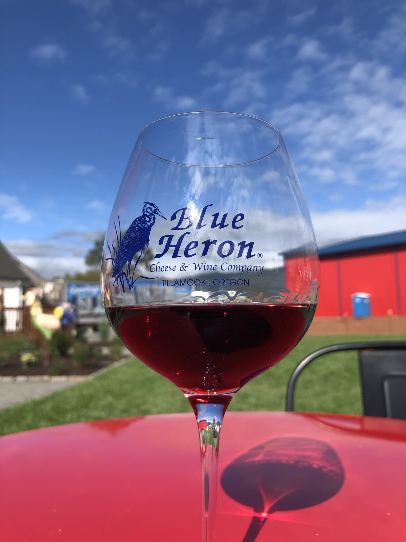 As the road turned inland past a bay, it finally cleared up and became sunny with blue skies. I stopped at the Tillamook Creamery, where they make a popular brand of dairy products. I did the free self-guided tour of the factory to see how they make cheese, and then ordered a grilled cheese and fries and enjoyed my free cheese sample, which ended up being my dinner in the late afternoon. It was so yummy and I started to feel better about things. I decided to skip the ice cream line which looked to be over a half hour wait, instead deciding to try Tillamook ice cream from the grocery store when I got home. A bit down the road I stopped at Blue Heron Cheese, a little farm stand/store area, and got a glass of pinot noir and drank at a lovely table outside, watching a peacock walk by the grassy landscape. I waited a bit to drive, and then decided it was time to head back to Portland.