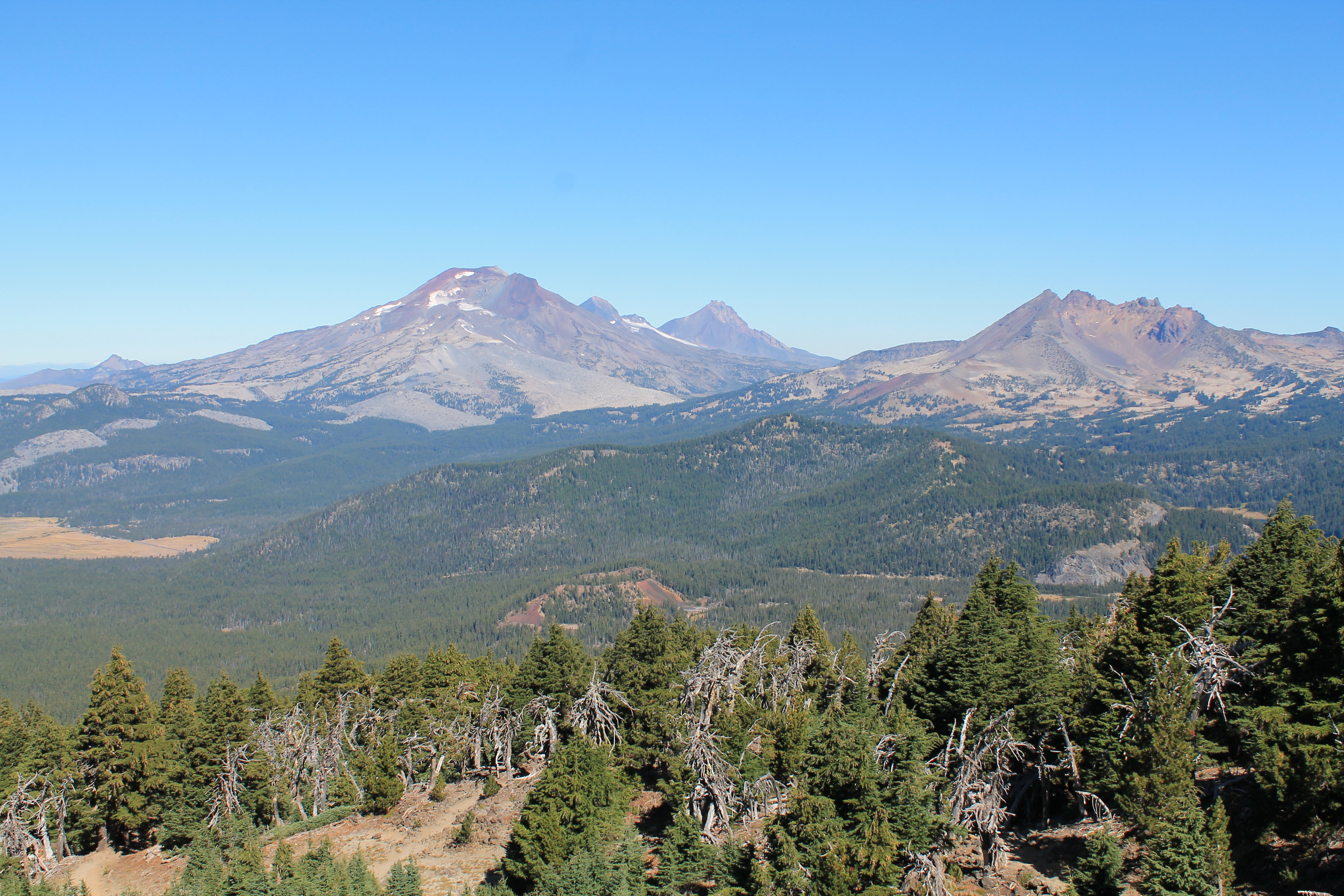 Next up, on Sunday I explored the Mt. Hood area and made my way to my next destination, Bend, about 3 hours away if you drive straight from Portland. I used an audio GPS driving tour from a phone app that gave me some history of the Mt. Hood area as I drove a quiet tree-lined road that morning, enjoying the mountain view. About an hour and a half later I drove partway up the mountain and arrived at the Timberline Lodge, a hub for outdoor activities like mountain biking and skiing, and also where they filmed The Shining. One of the ski lifts was still running but I opted to skip it, instead going for an out-and-back hike for about 5 miles around the mountain. The trail was part of the famous Pacific Crest Trail, and it was really cool seeing the signs pointing north to Canada and south to Mexico. The trail had easy parts and some more moderate, with some cool rocky elevation dips, and lots of great views of the peak and valleys below. It was fun seeing the backpackers and thinking about the book Wild. On the way back it became very crowded so I’m glad I got an early start.
