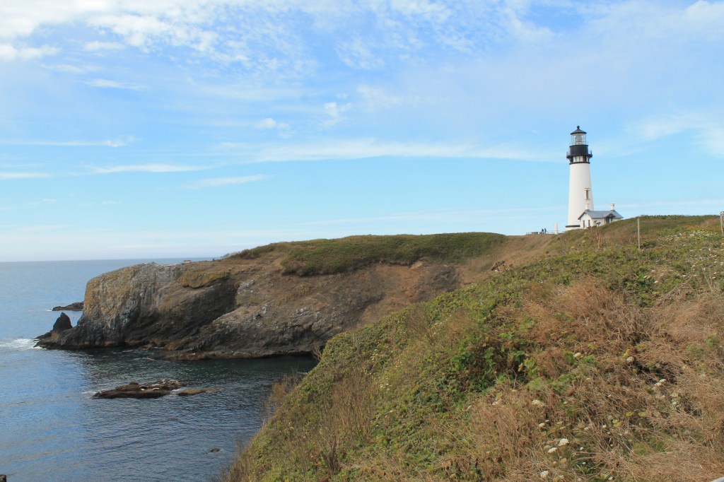 Onward, I drove through the town of Newport, and then stopped at Yaquina Head Lighthouse, which was federal land called an “Outstanding Natural Area.” This one was famous for being the tallest lighthouse in Oregon, and also a very popular spot for photos. It didn’t involve hiking so it was a more touristy experience than the morning lighthouse, but also really beautiful. Looking down and out to the water I also got to see sea lions lounging on some big rocks!