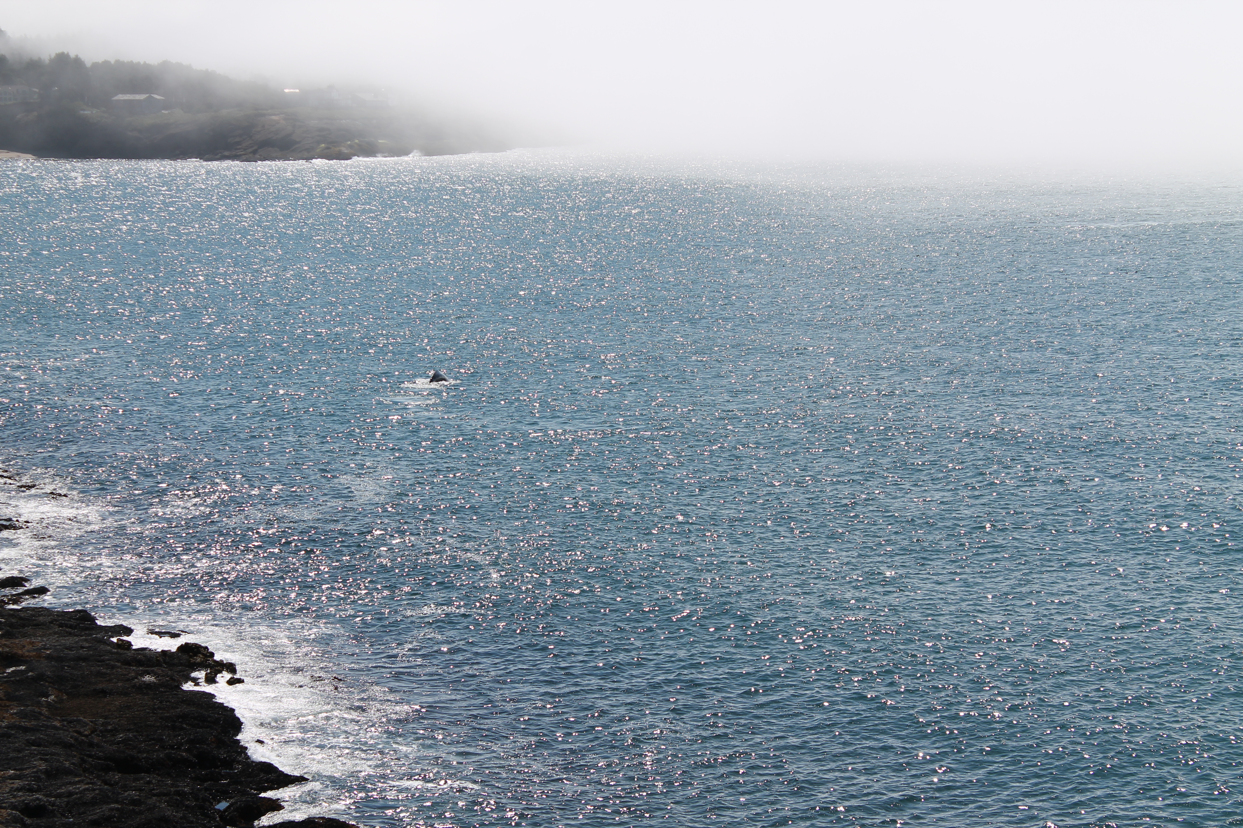 For my next stop, I drove about 20 minutes north of Florence to another big tourist attraction in the area, the Sea Lion Caves. After paying you ride an elevator down to sea level, enter a little cave, and get a viewing spot of the largest sea cave in the world, where the sea lions like to hang out. Sadly, they were away for the season, but I decided to go down anyway and it was still pretty cool to see. I also ended up seeing some wild sea lions later, although from a little far away. The area also gave me my first great views of the rocky and wild Oregon Coast, including a far-away view of the famous Haceta Head Lighthouse (at least, once the fog blew away). I headed back into town, formally checked into my room, and partook in my favorite guilty pleasure meal by picking up some Pizza Hut to eat in my room. After dinner I drove into the town and walked around the cute shops and harbor a little bit, though most stores were closed for the evening by then. I marveled at the interesting fog which stopped abruptly in a line, and then realized I was exhausted after a long day so headed back for a good night’s sleep.