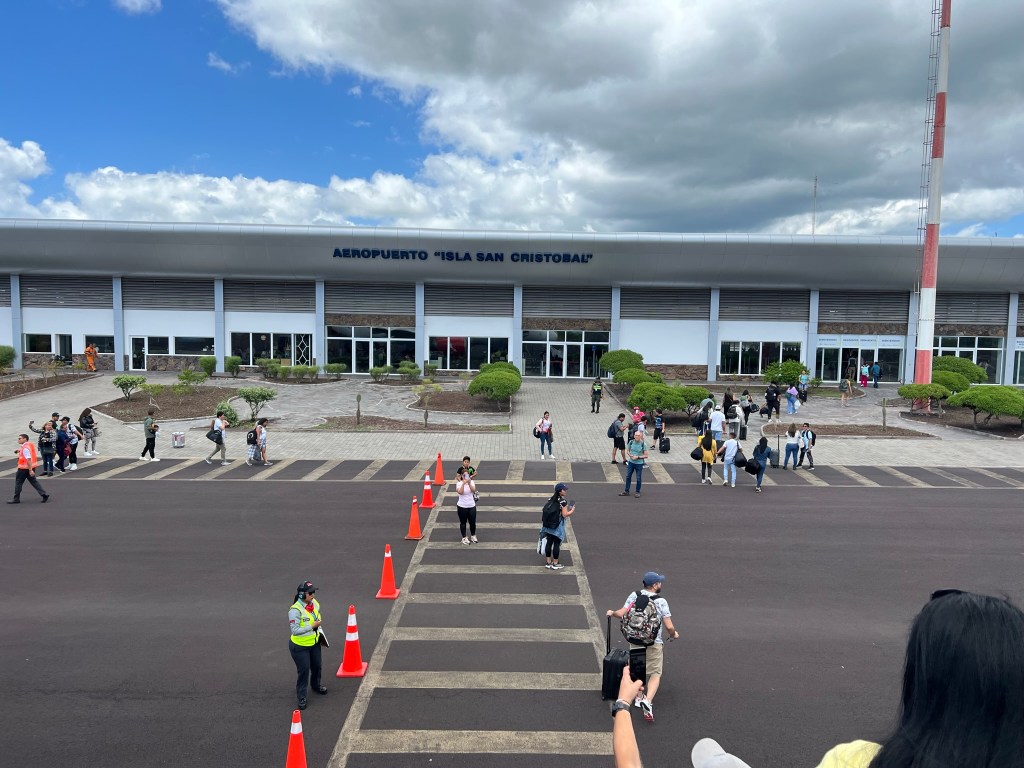After a decent night’s sleep, we had breakfast in the hotel at 6am for our 6:30 drive to the airport. Another Intrepid worker met us at the airport and helped usher us through the boarding process, which was cute. She gave us our boarding passes and sent us through a special bag check to scan for foods and plastic bags and such. The Galapagos are super protected and the flight was pretty unique because of that. We had a special transit card the tour gave us, for $20, that everyone needs to enter. When you arrive you also pay a $100 national park fee in cash ($6 for Ecuadorian residents). The flight stopped over in Guayaquil after 45 minutes and we stayed on the plane while it refueled, and we had to turn fully off our phones and be unbuckled for this time (so we could evacuate if the plane explodes, we posited). The flight attendants also sprayed all the stored carry on luggage with a disinfectant or pesticide of some sort.