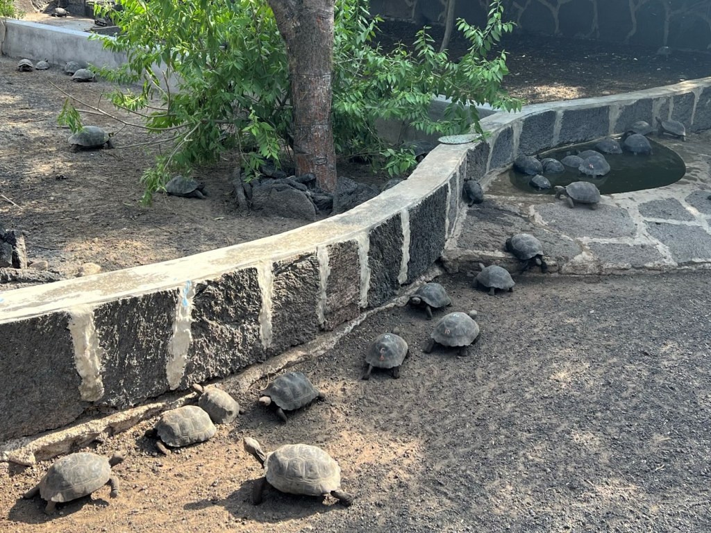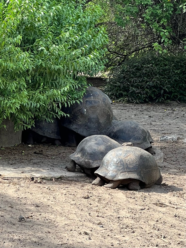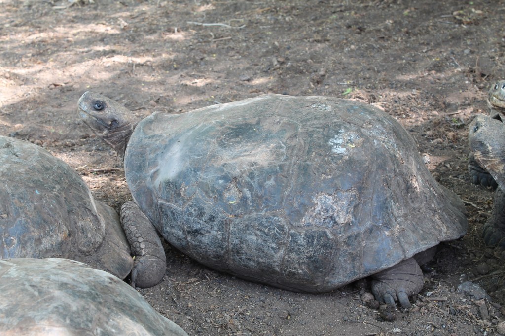 Well earlier in the day was amazing too. After an early and annoying wake up call from the local roosters, we started after breakfast by taking a bus to the giant tortoise breeding center, and got to see tons of these prehistoric-looking beasts at different ages. The smallest ones were in covered cages, but from ages 2ish and up they were in open pens and we could see them up close. The little ones were super active and adorable. The older ones were a little sluggish. We saw a male humping a female, which apparently is complicated and takes hours to finish. He was moaning a lot. They live up til about age 150 and reproduce starting around age 25. I loved these guys!