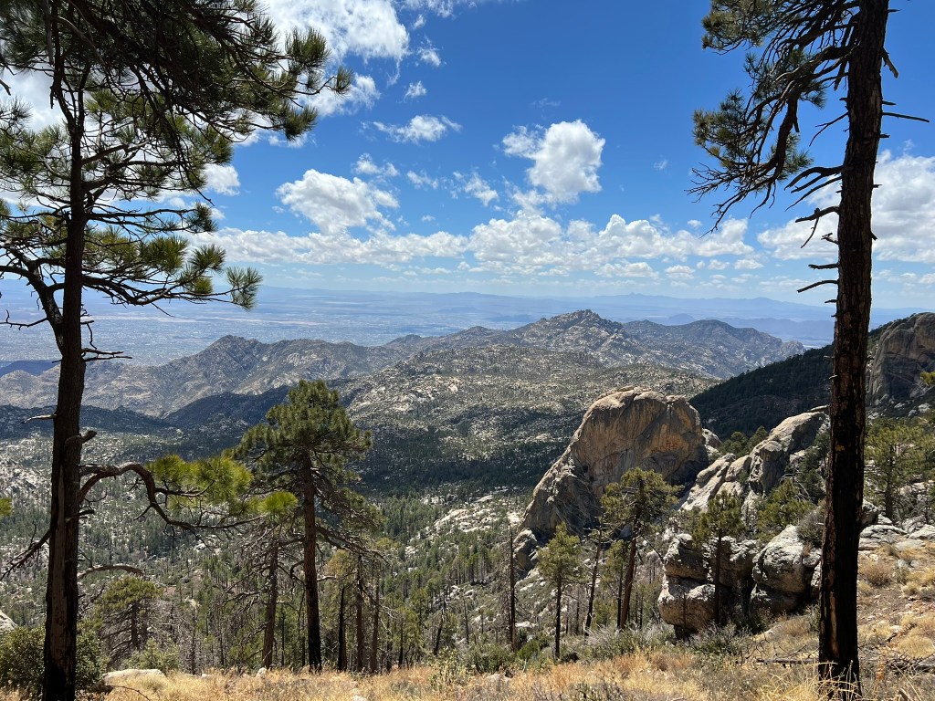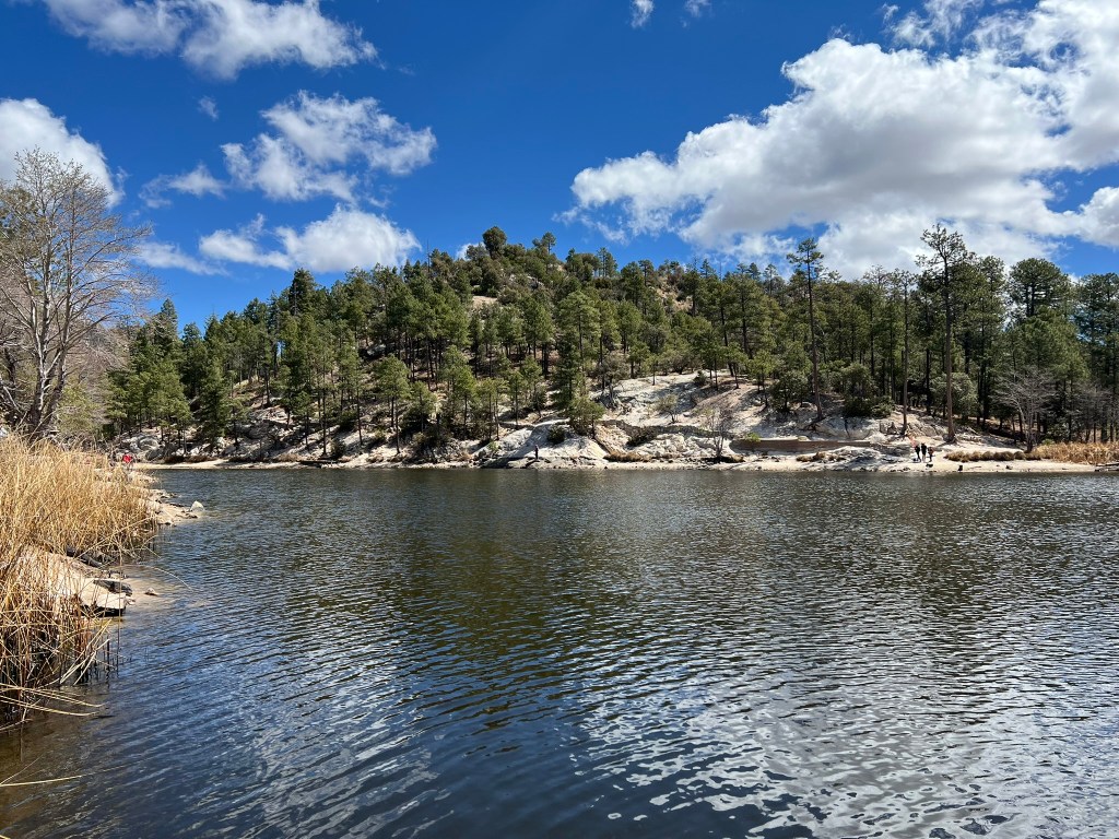 The next day, I did my favorite mountain drive up Mount Lemmon – which goes up about 7,000 feet and has wildly diverse landscapes along the way. The journey led me to follow a random sign deep into the isolated woods where I discovered a full-on lake, with people fishing, swimming in the icy water, and even taking wedding photos. Up top I ended up doing a 2-mile hike at 9,000 feet elevation, huffing and puffing and bracing myself in the strong wind, but admiring incredible views.