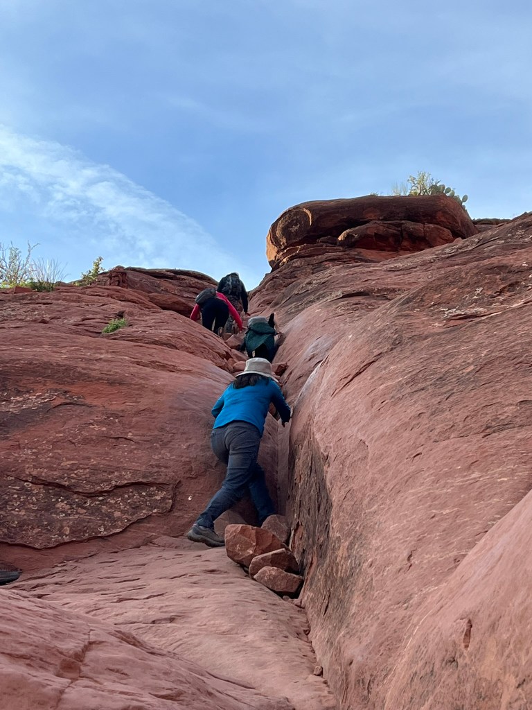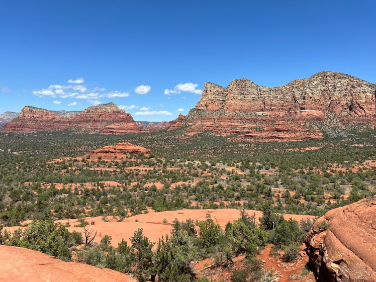 As I sat cross-legged on the cliff edge at the top of the hike, staring into the red rock formations below and feeling the morning sun warm my back, I felt a profound sense of…something. It was part an adrenaline-fueled explorer high from scrambling the steep rock face, part deep satisfaction with my life choices that led me to that spot, part the clarity of accepting uncertainty in life, part awe of the magic of solo travel to get me out of my months-long funk, part gratitude, part calm, part quiet hilarity at the family that decided to stand right behind me to take a photo while whispering to each other, and lots of other parts. Maybe there really is something to those energy vortexes.
