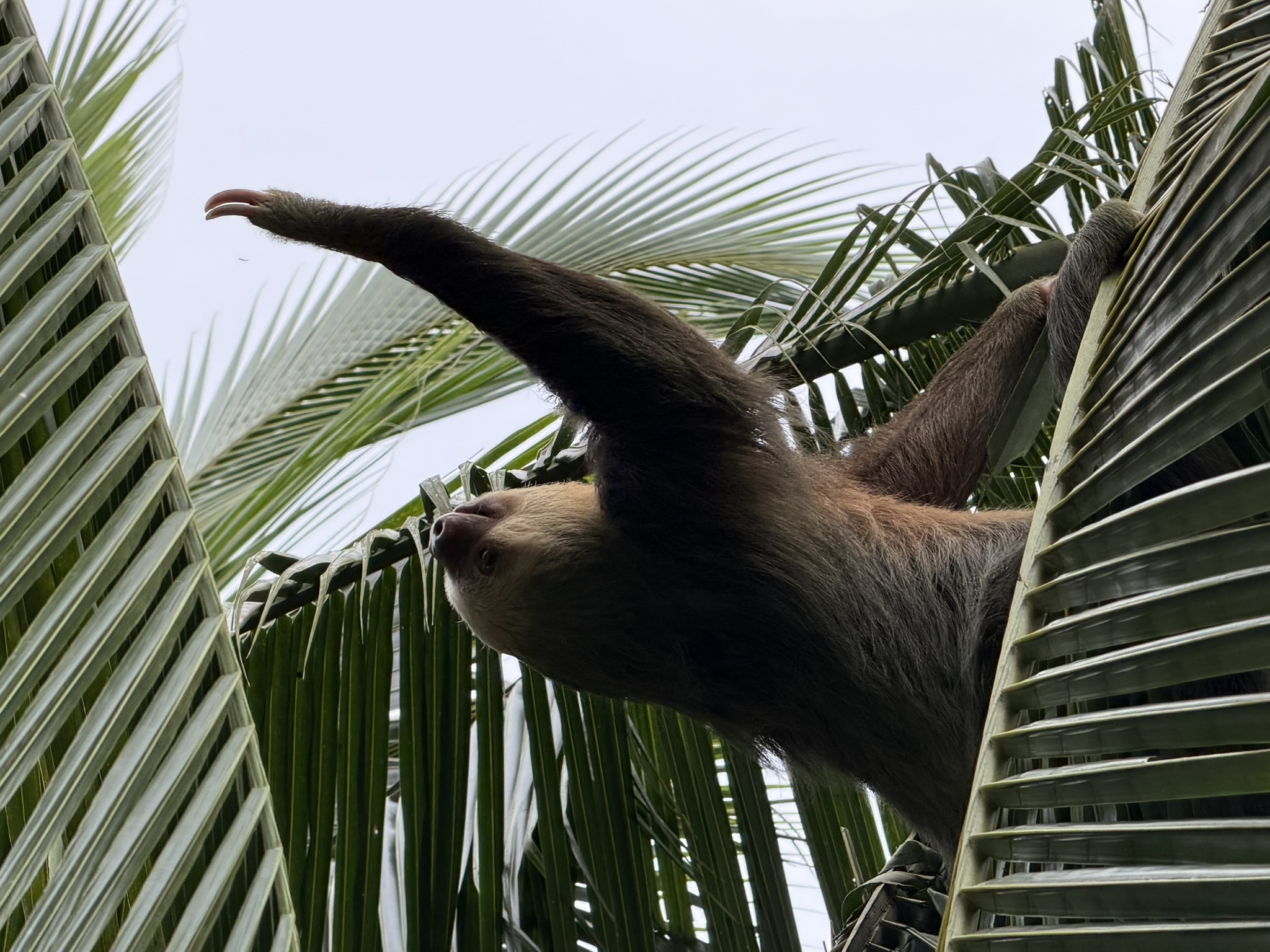 The sloth, who we guessed was a female for no real reason, was exerting a lot of effort trying to move between trees, reaching so far, and sometimes missing. But eventually she would grab the next set of leaves and feel balanced enough to transfer to the next tree.